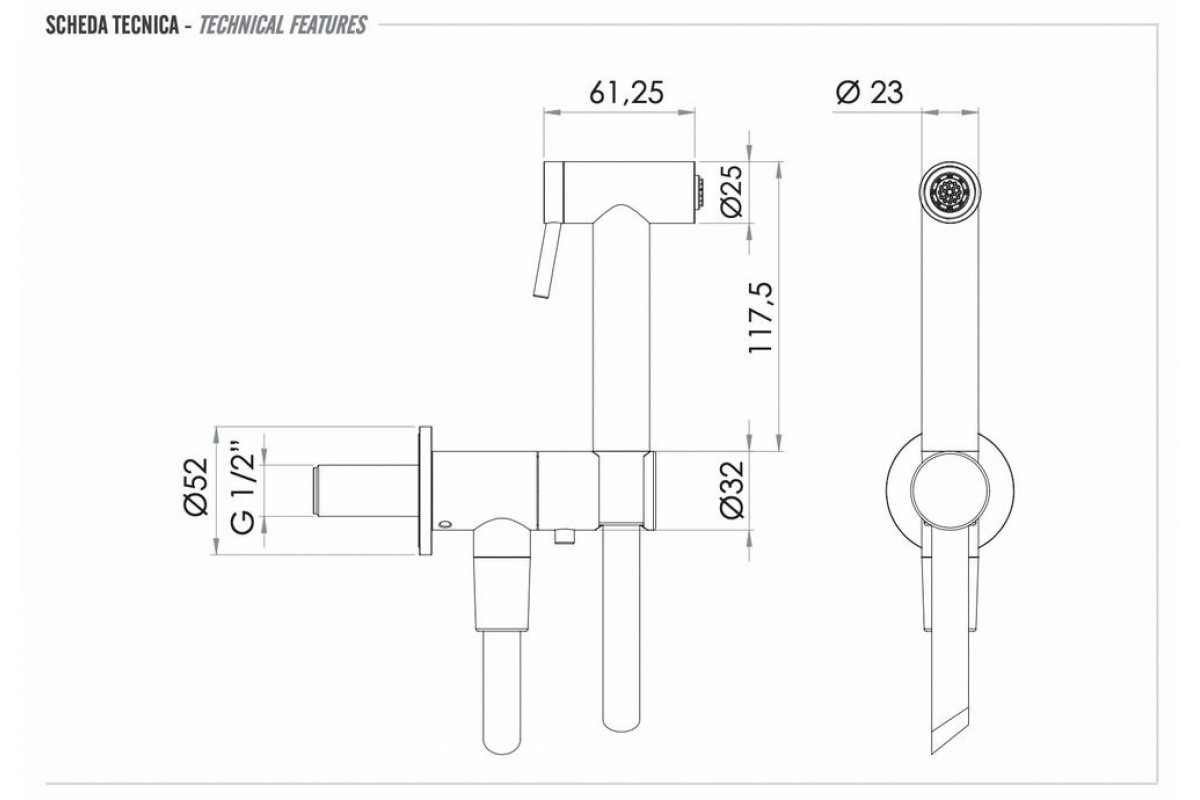 Гигиенический душ Remer X Style INOX SS338M332ON, нержавеющая сталь
