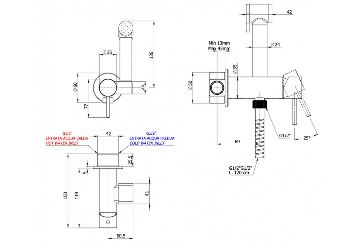 Гигиенический душ Remer X Style X65C25W