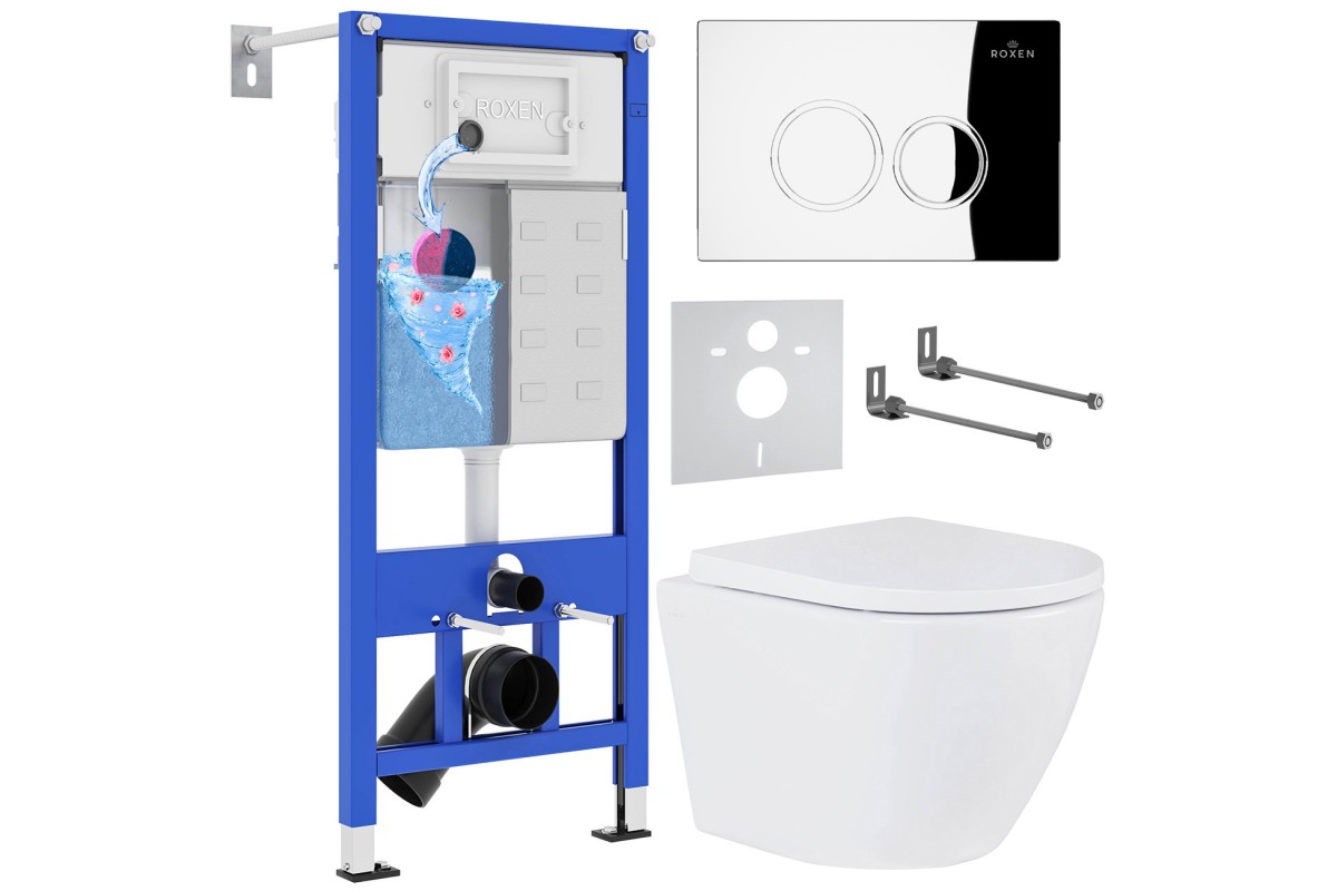Вышеприведенная информация получена из открытых источников, в том числе с официальных сайтов и из каталогов производителей. При получении заказа ОБЯЗАТЕЛЬНО обращайте внимание на важные для вас параметры и характери... Подробнее...состоит из : 1. cистема инсталляции для унитаза Roxen StounFix Dual Fresh 710200 2. подвесного унитаза Antares 530185-02 3. крышки для подвесного унитаза Antares 530185-02, 4. кнопки для инсталляции Roxen Santi 410260CH 5. удлиненный комплект креплений к стене 6. звукоизолирующая панель