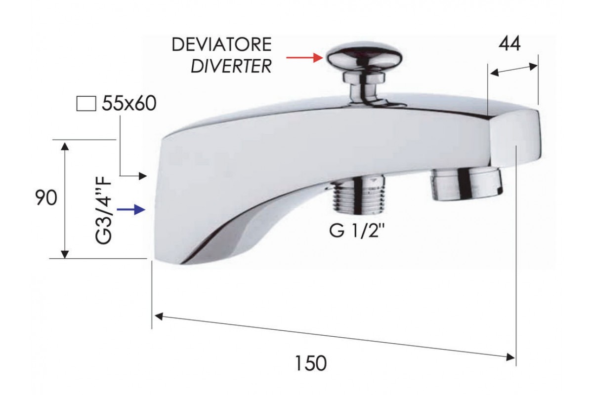 Излив настенный 15 см с дивертером Remer 91D