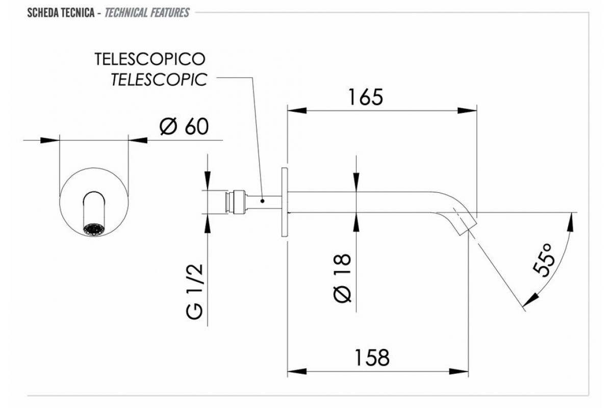 Излив настенный 16 см Remer X Style INOX SS91X, нержавеющая сталь