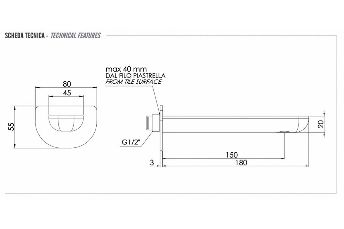 Излив настенный 18 см Remer Infinity 91IBO, белый матовый