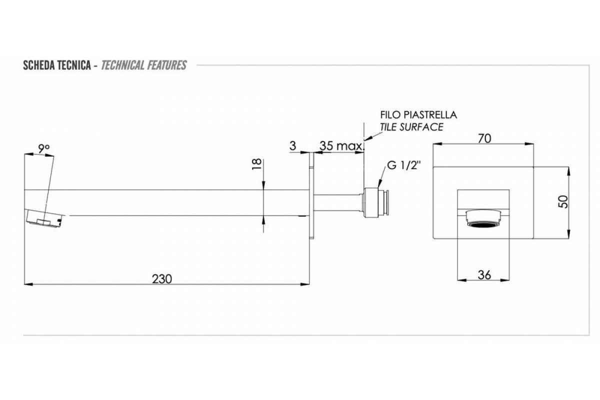 Излив настенный 23 см Remer 91QL