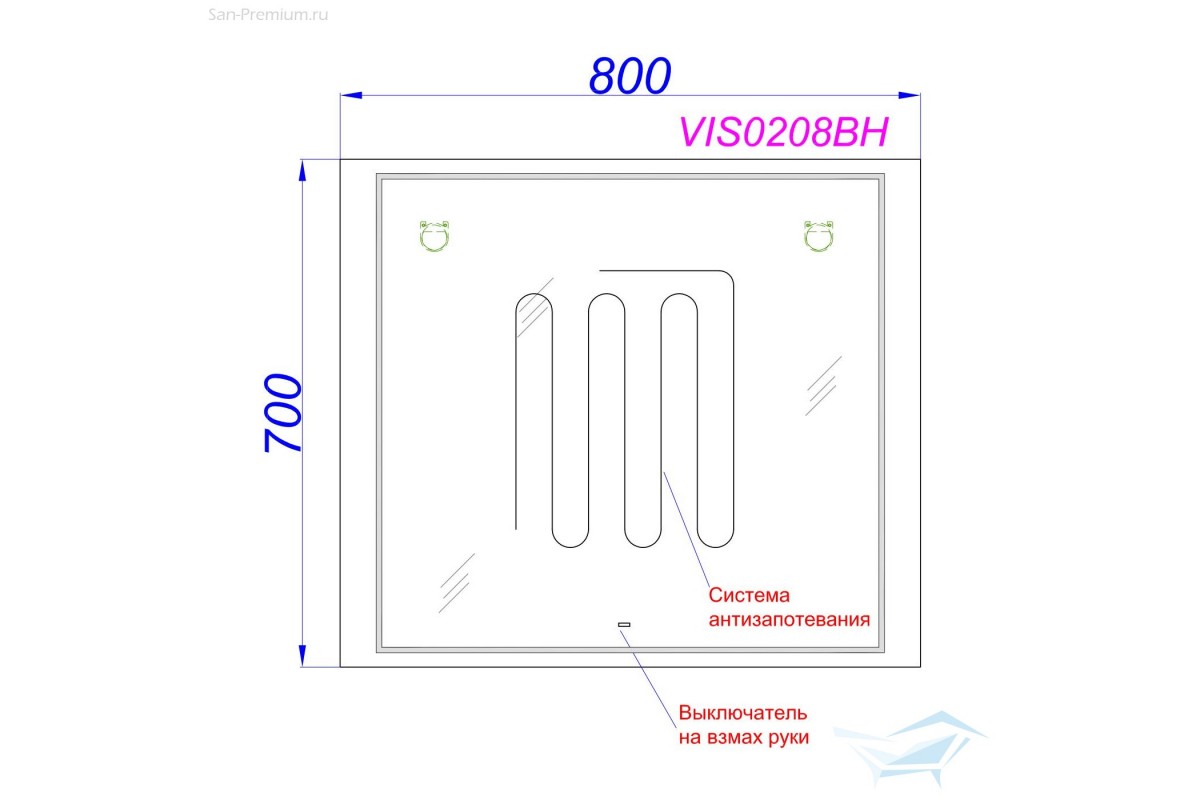 Зеркало Aqwella Vision 80 см VIS0208BH с подсветкой