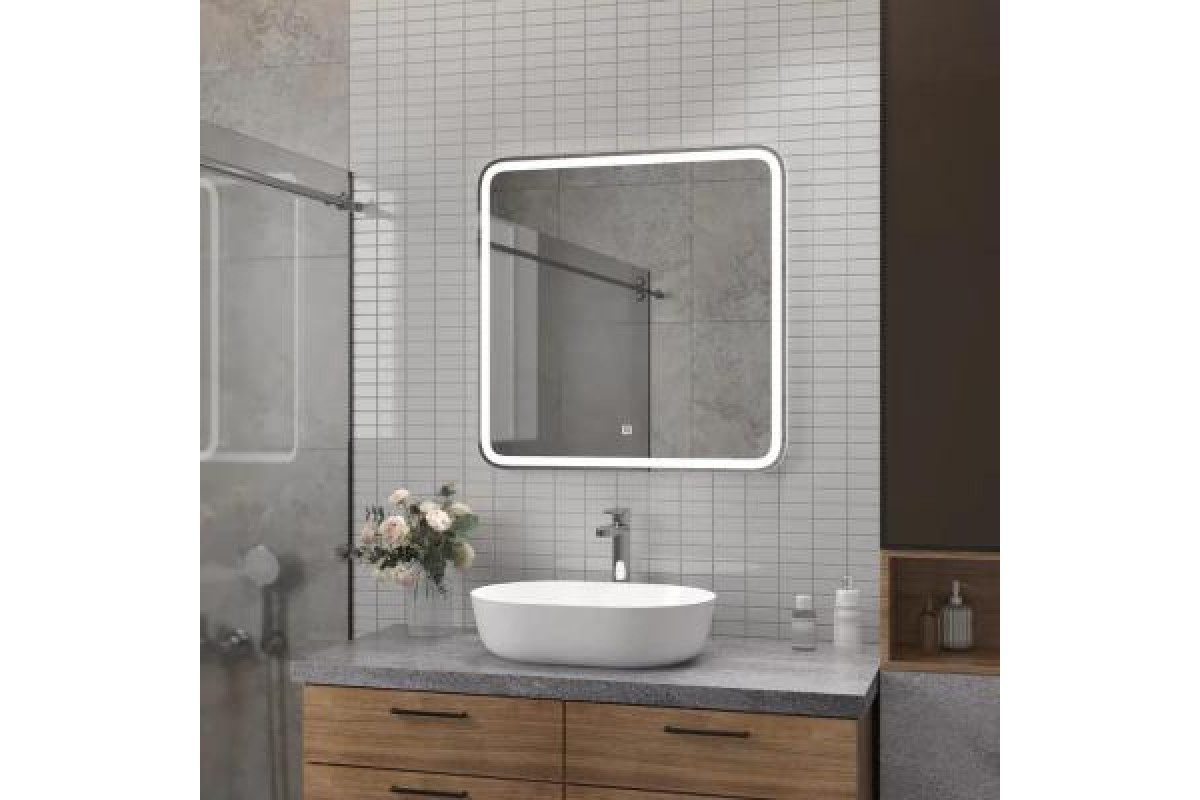 Зеркало с подсветкой КОНТИНЕНТ Russo LED с подогревом и часами 800х700 ЗЛП2498