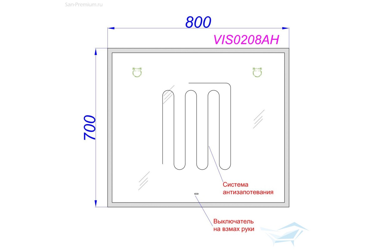 Зеркало с подсветкой и подогревом Aqwella Vision 80x70x3 см (ШxВxГ)