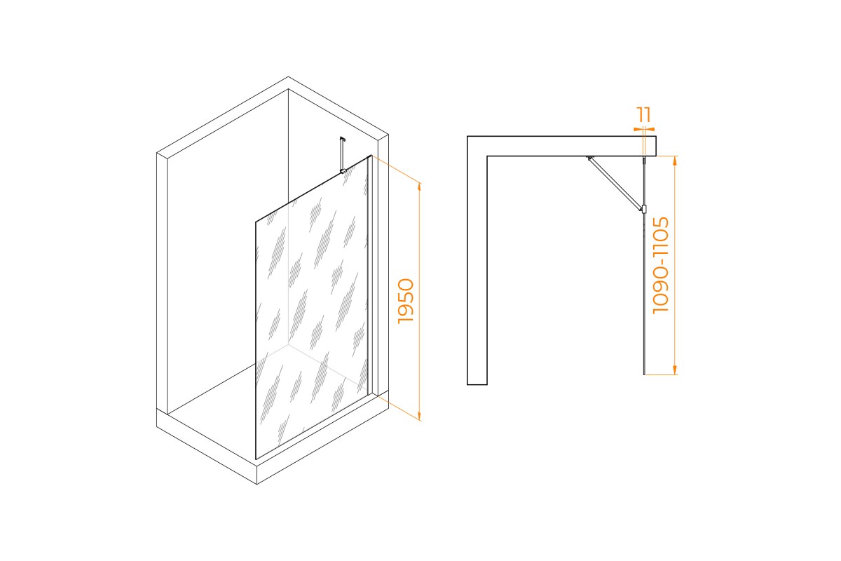 Душевая перегородка RGW WA-102 неподвижное Walk In cтекло прозрачное, 6 мм 110*195 xром 351010211-11