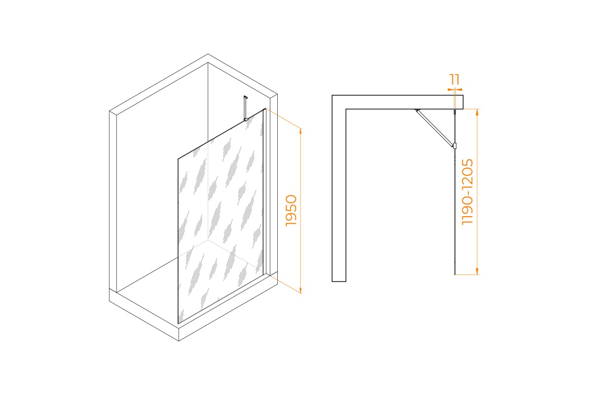 Душевая перегородка RGW WA-102W неподвижное Walk In cтекло прозрачное 6 мм 120*195 351010212-15
