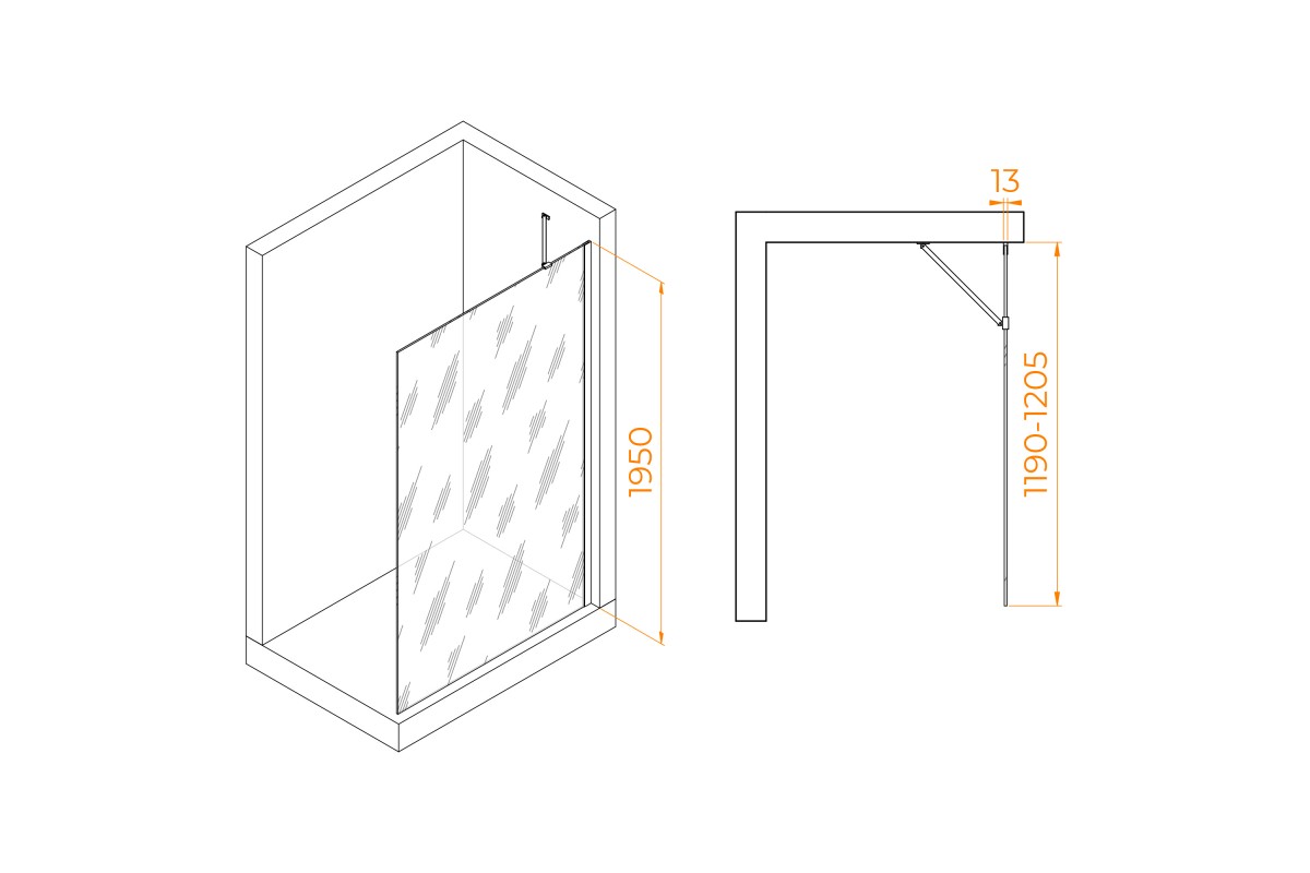 Душевая перегородка RGW WA-110-Gb неподвижное Walk In cтекло прозрачное 8 мм золото браш 351011012-16