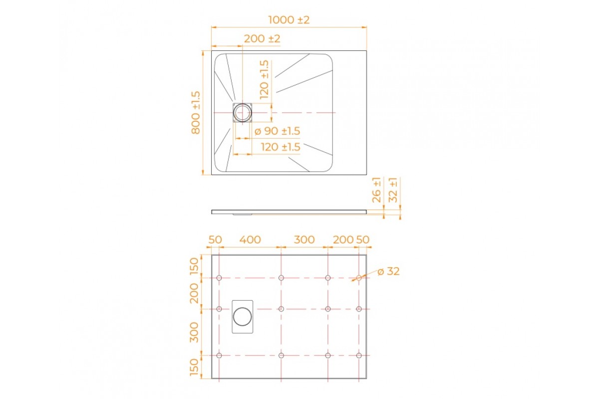 Душевой поддон прямоугольный RGW TSS-W cтеклопластик cерия (80*100*2,6) 553502810-01