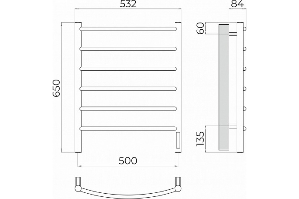 Электрический полотенцесушитель Терминус Классик П6 500х650 электро нержавейка standart