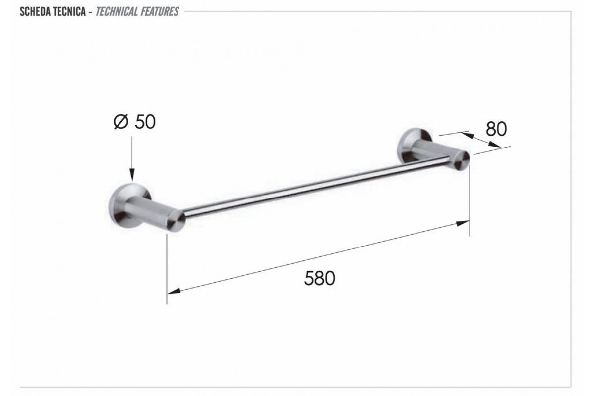 Полотенцедержатель 60 см Remer Minimal INOX Mi30INOXCR, нержавеющая сталь