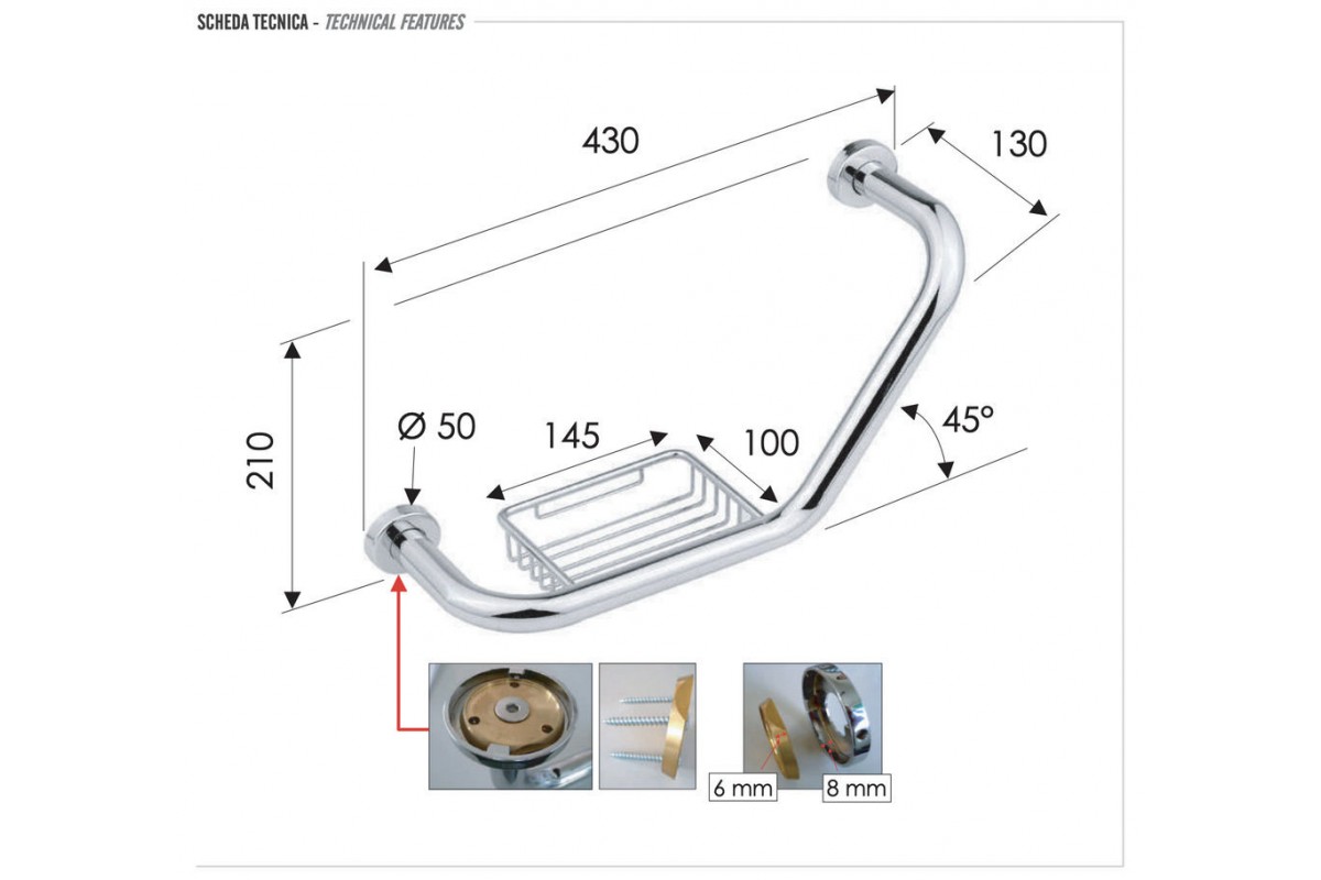 Поручень для ванной Remer RB480CR