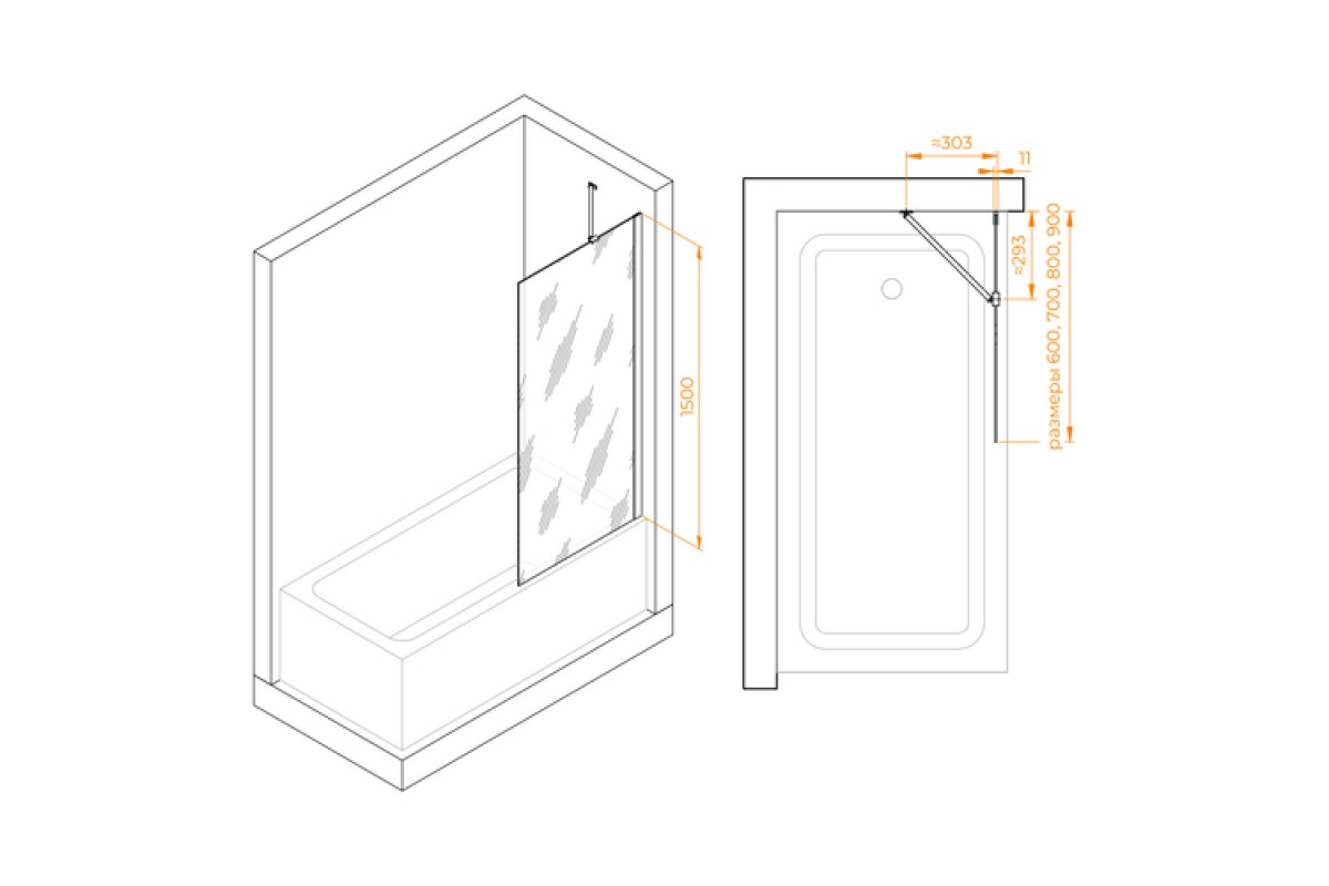 Стационарная шторка для ванны RGW Screens SC-150B 60х150 тонированное стекло (Серое) 6мм 351115006-34