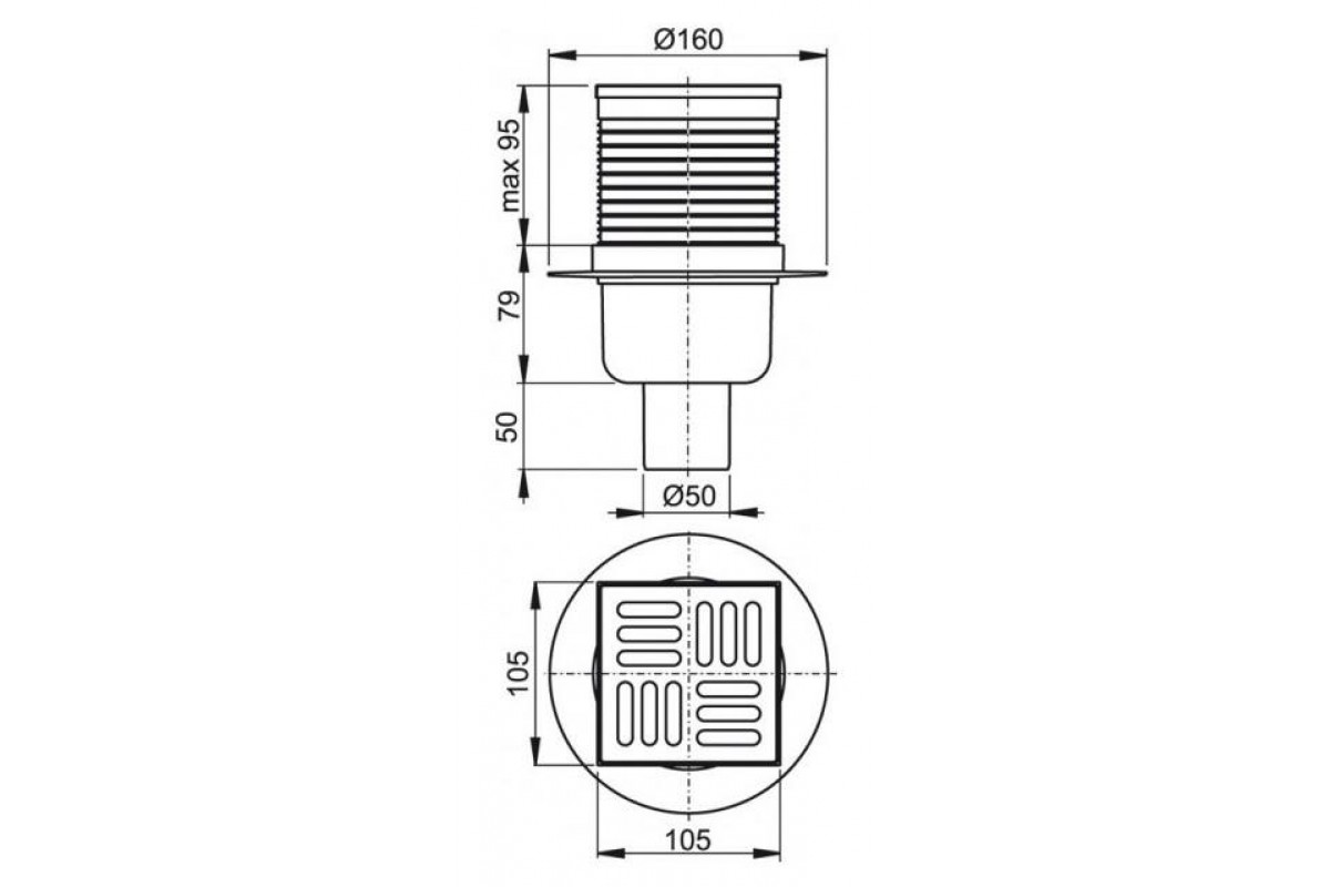 Сливной трап Alca APV2, со стальной решеткой 105x105