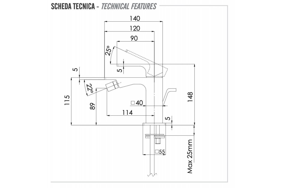 Смеситель для биде Remer Absolute AU20XV, сталь
