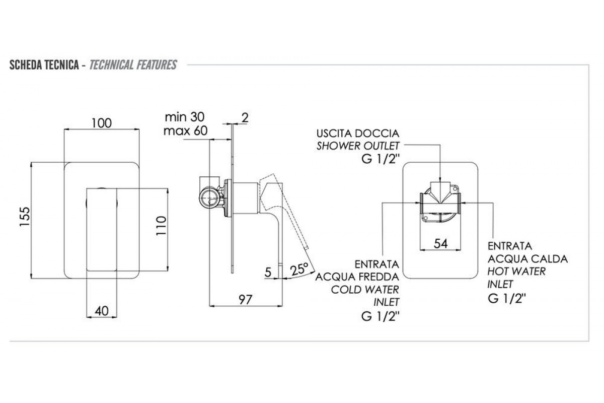 Смеситель для душа Remer Absolute AU30NO, чёрный матовый