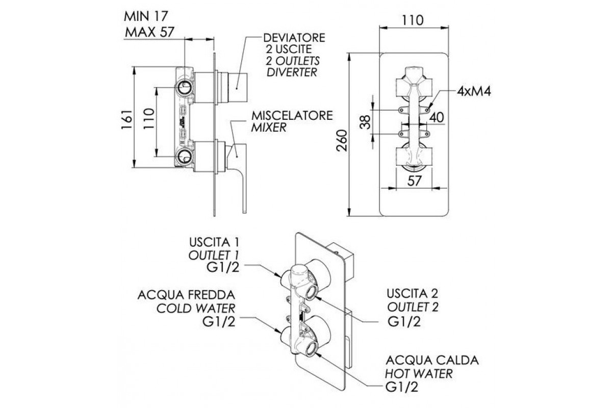 Смеситель для душа Remer Absolute AU92NO, чёрный матовый