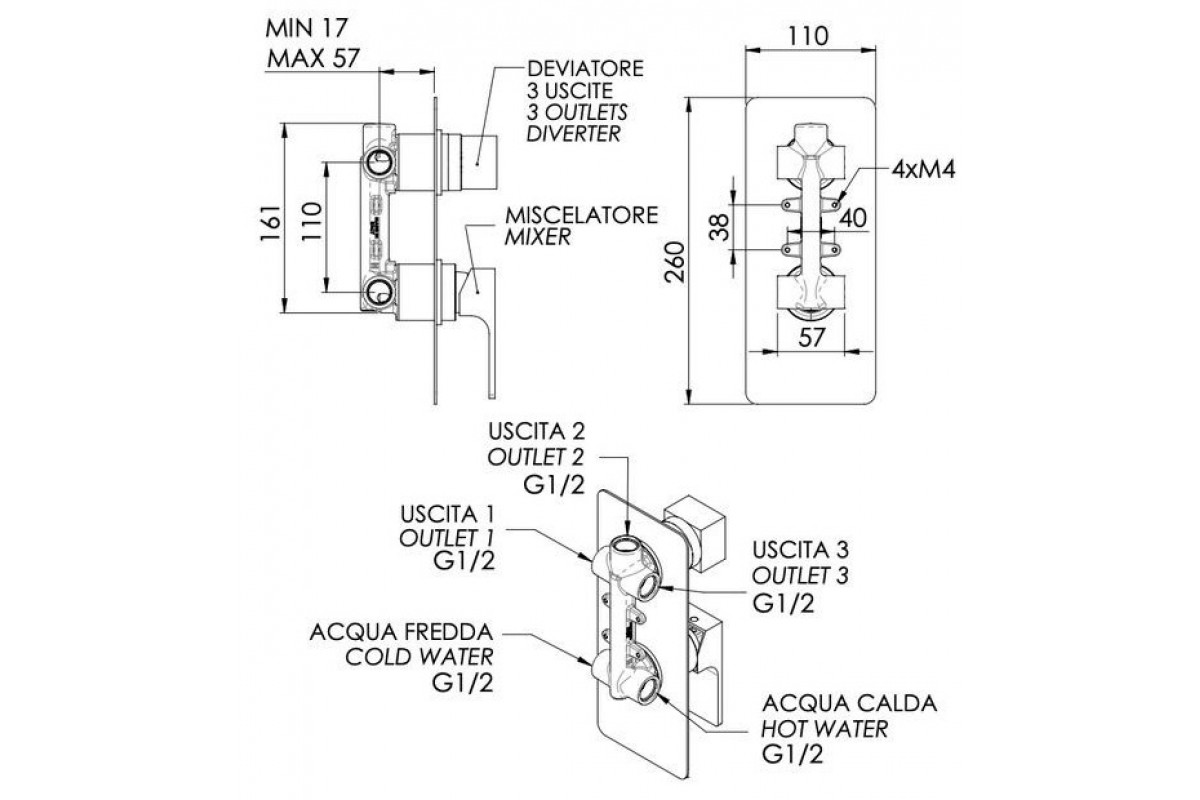 Смеситель для душа Remer Absolute AU93BG, золото брашированное