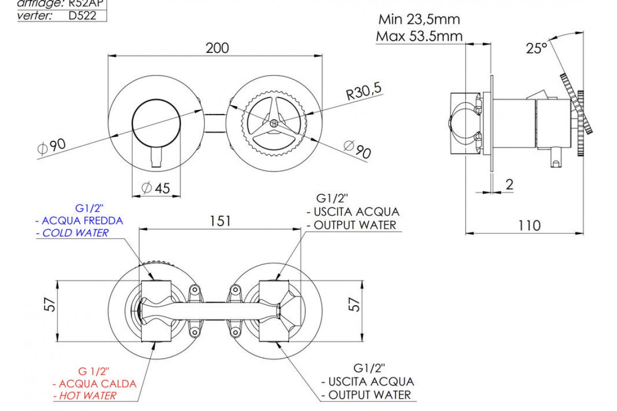Смеситель для душа Remer Chrono CH92ZPXV, сталь
