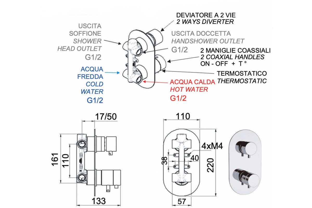 Смеситель для душа Remer Elegance NT92BG, золото брашированное