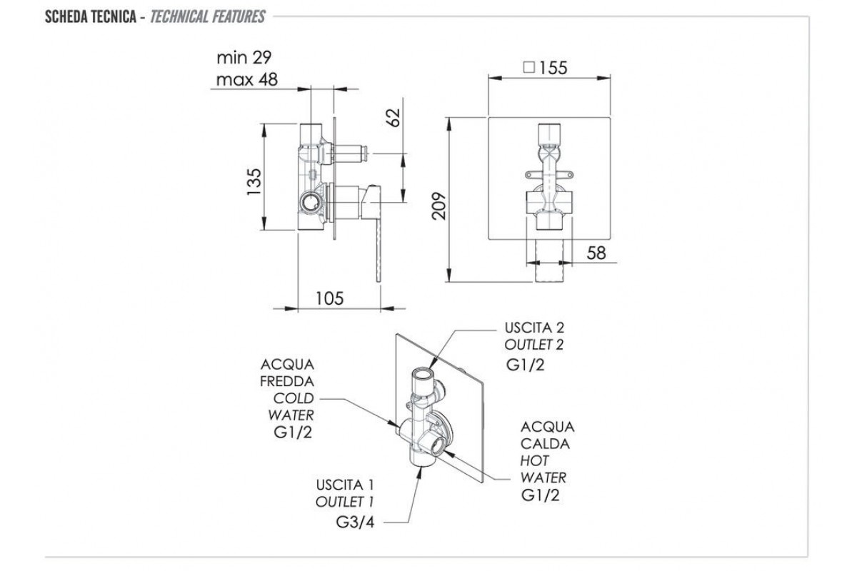 Смеситель для душа Remer Qubika Q09