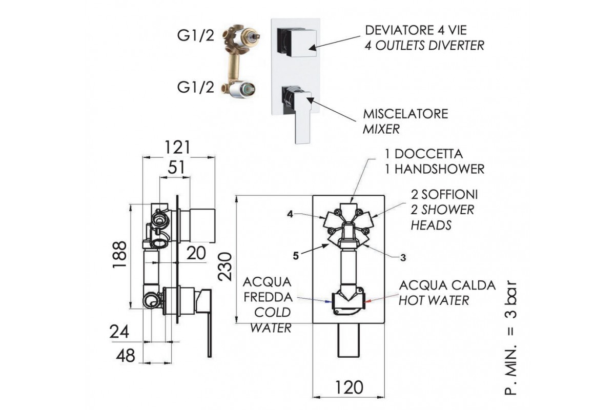 Смеситель для душа Remer Qubika Q94
