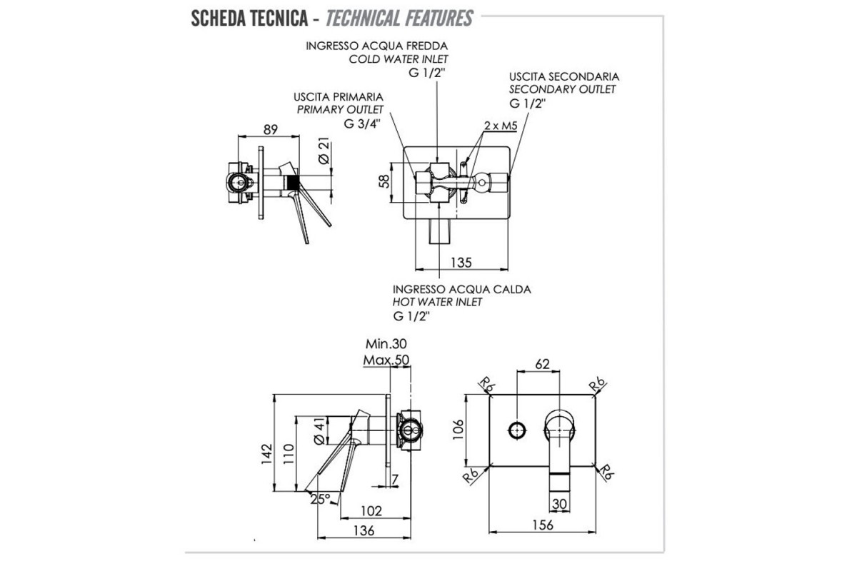 Смеситель для душа Remer Slash SL09HRG