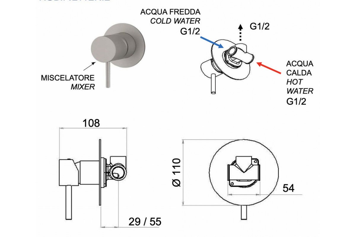 Смеситель для душа Remer X Style INOX SSX30L, нержавеющая сталь