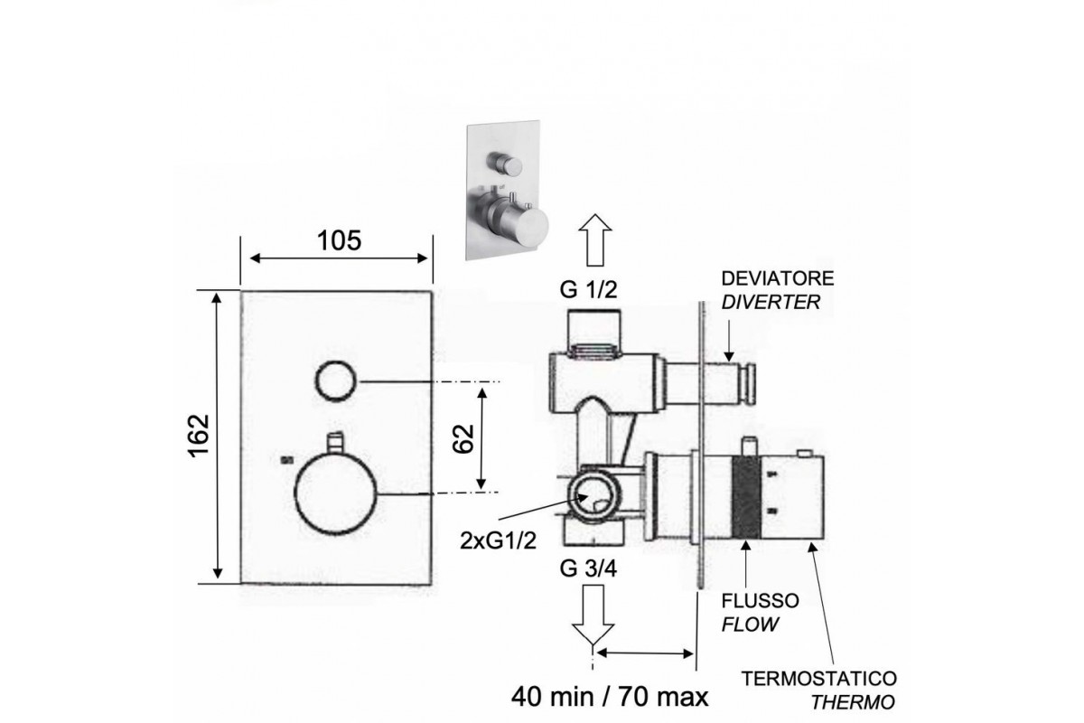 Смеситель для душа Remer X Style INOX SSXT09Q, нержавеющая сталь