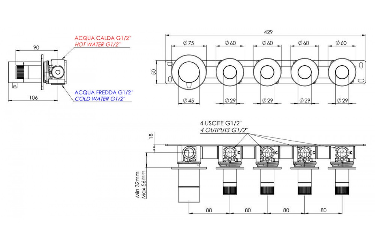 Смеситель для душа Remer X Style N98D4PBG, золото брашированное