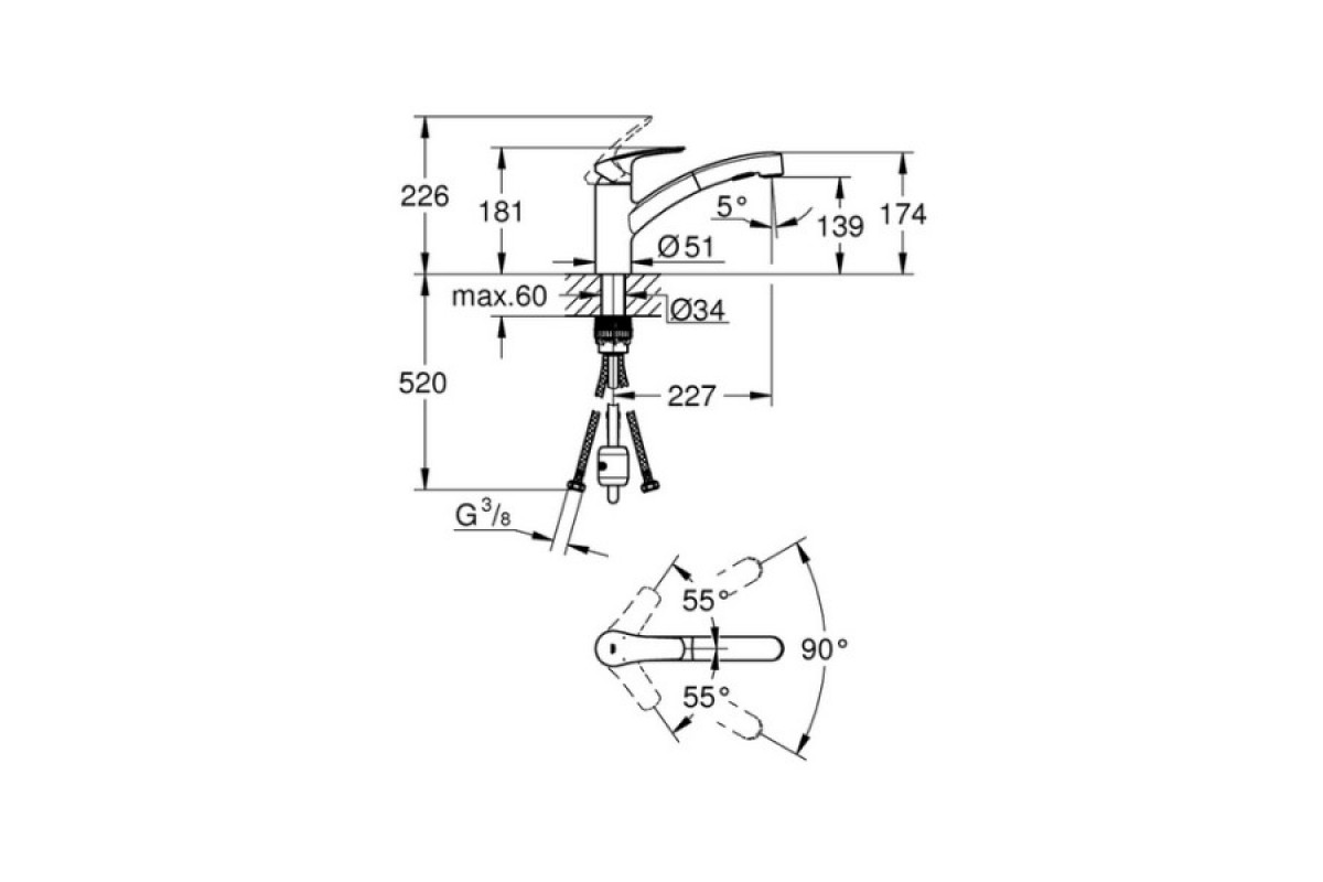 Смеситель для кухонной мойки Grohe Eurosmart 30305001 / 30305DC1 с выдвижным изливом