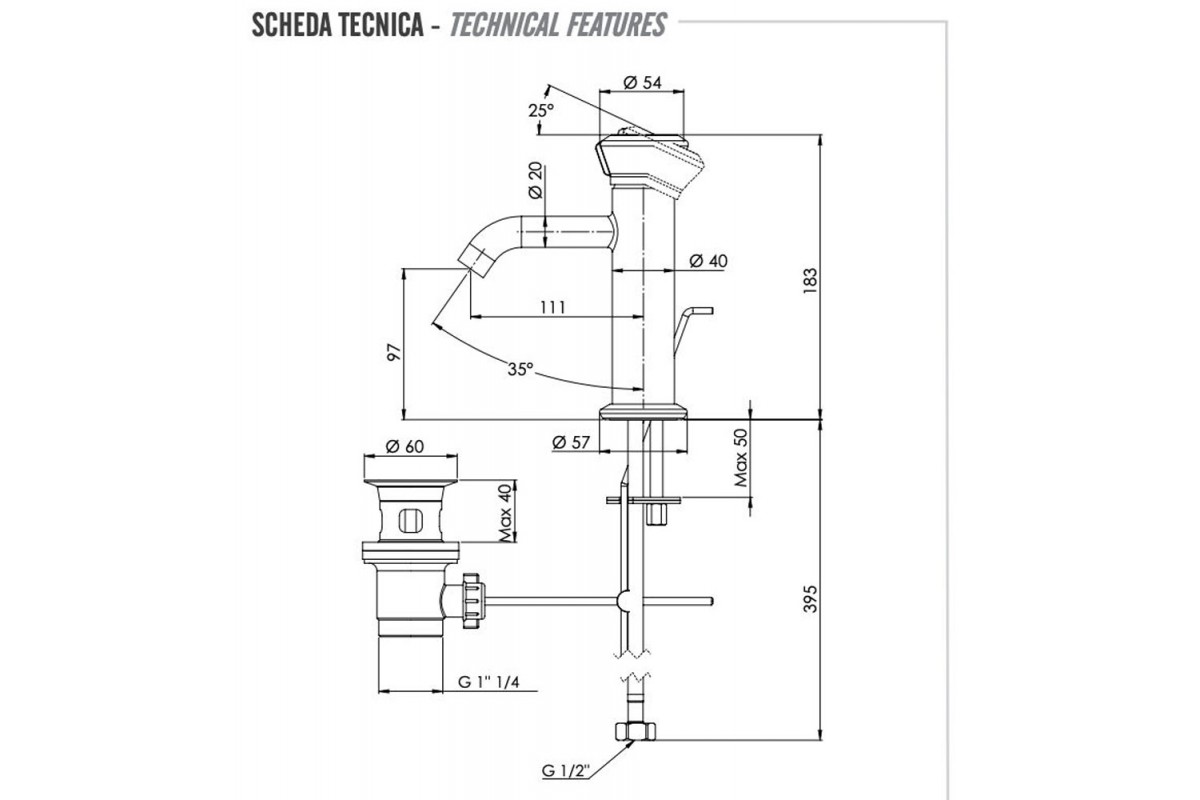 Смеситель для раковины Remer Element ET10CFP, черный брашированный хром