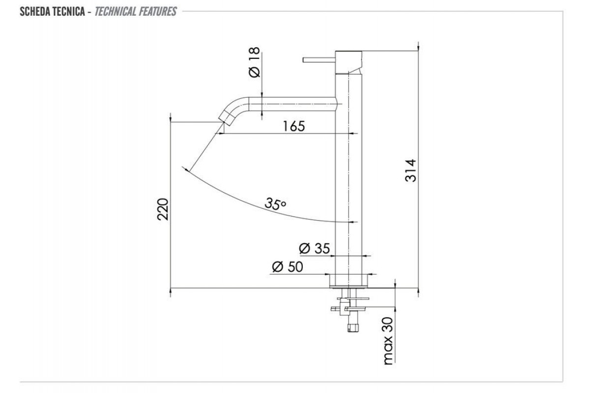 Смеситель для раковины Remer X Style INOX SSX10LXLB, нержавеющая сталь