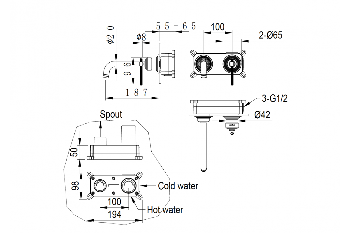 - Длина излива (мм): 187