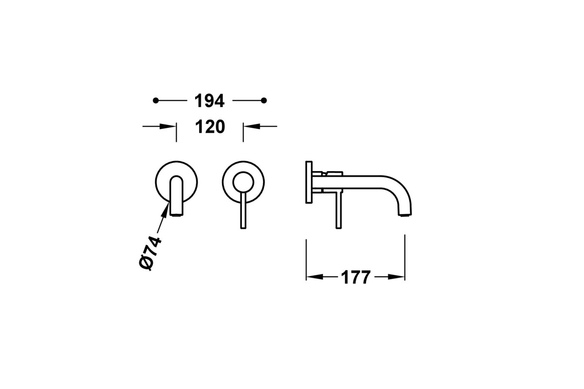 Смеситель для умывальника встраиваемый из стены 177мм, Tres Study 26230021
