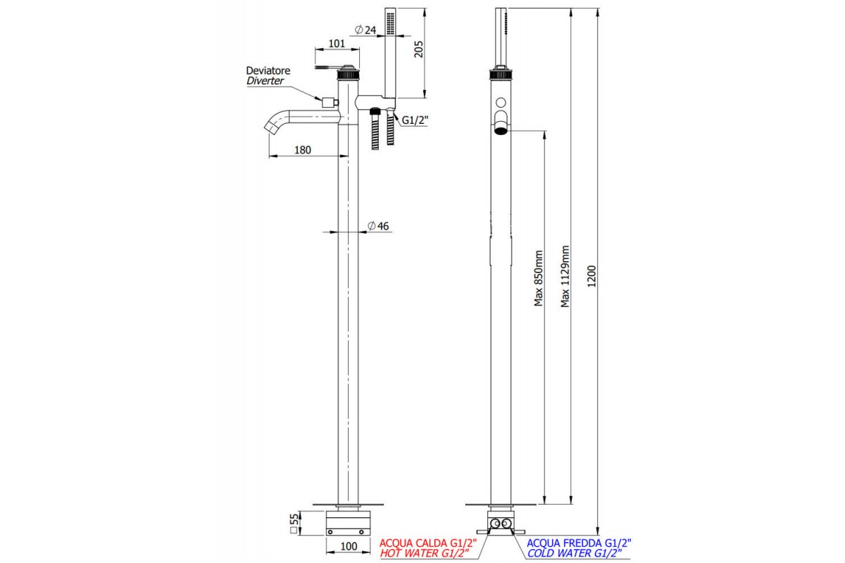 Смеситель для ванны Remer Atelier AL08BG, золото брашированное