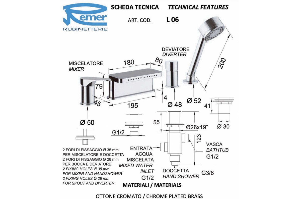Смеситель для ванны Remer Class Line L06