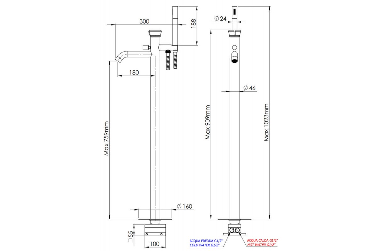 Смеситель для ванны Remer Element ET08NO, черный матовый