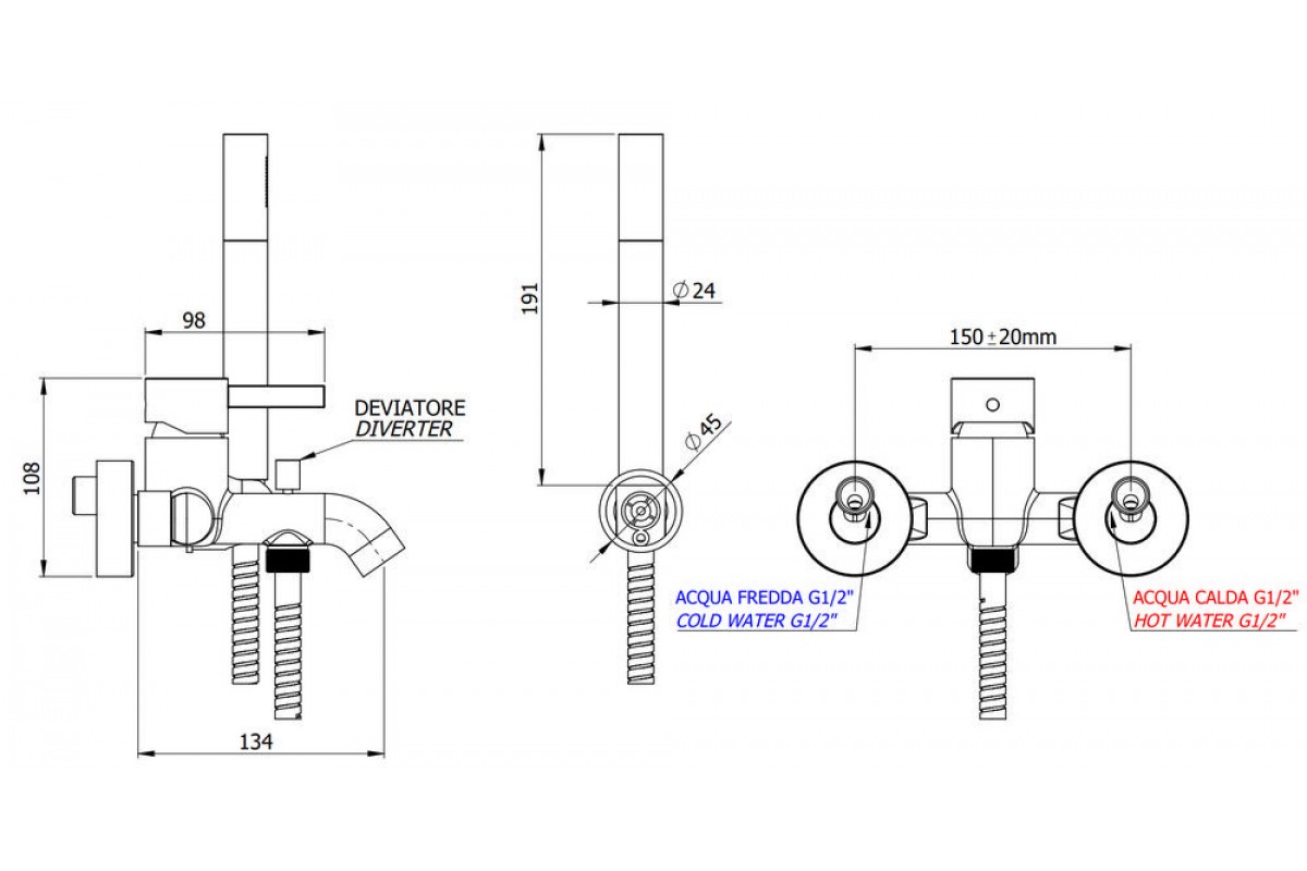Смеситель для ванны Remer Metrica MC02BG, золото брашированное