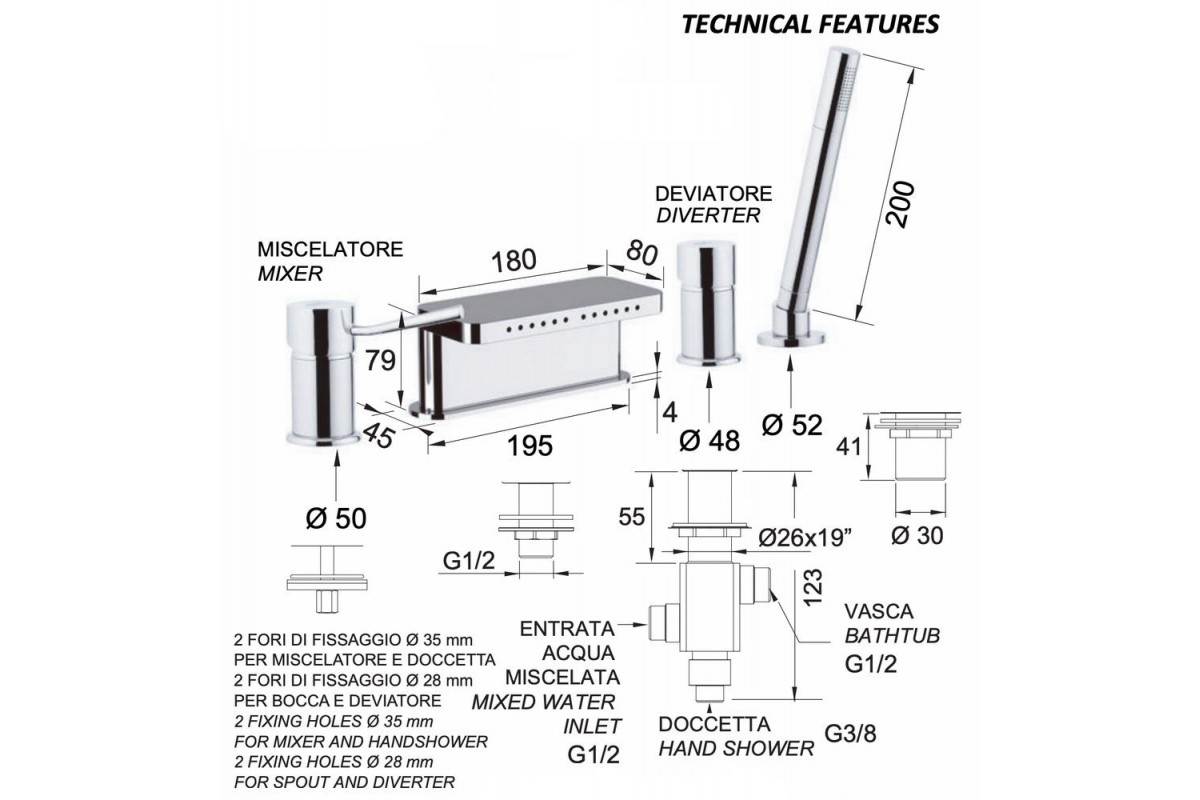 Смеситель для ванны Remer Minimal N06317MMBO, белый матовый