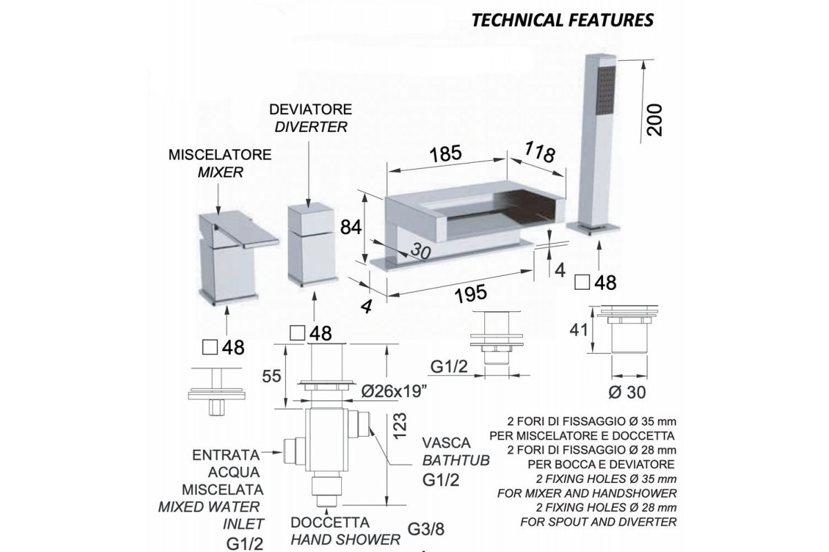 Смеситель для ванны Remer Qubika Cascata QC06BO, белый матовый