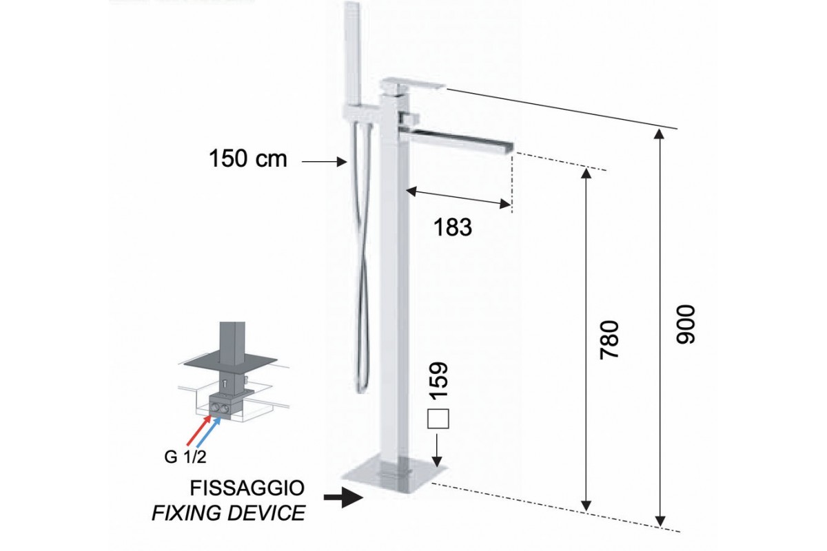 Смеситель для ванны Remer Qubika Cascata QC08