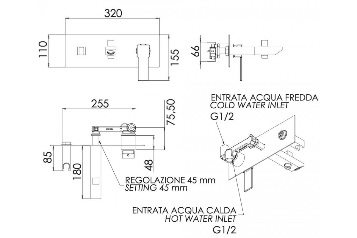 Смеситель для ванны Remer Qubika Q04