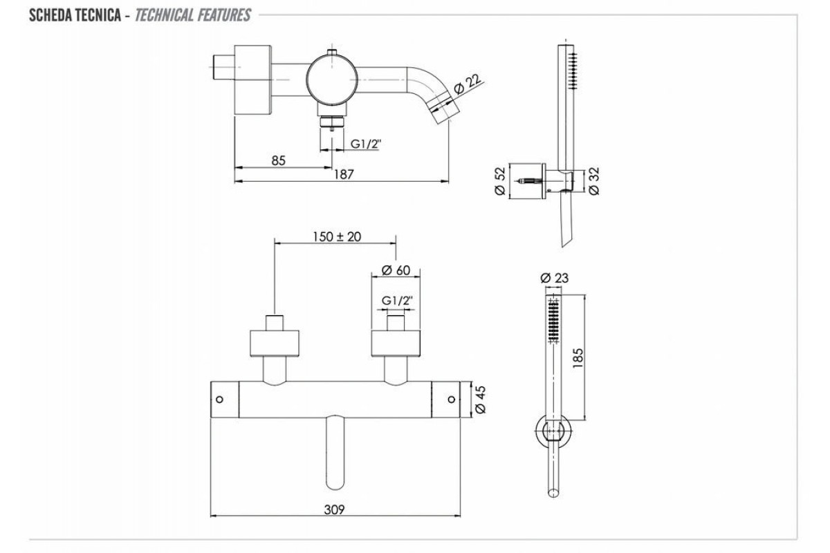 Смеситель для ванны Remer X Style INOX SSXT02, нержавеющая сталь