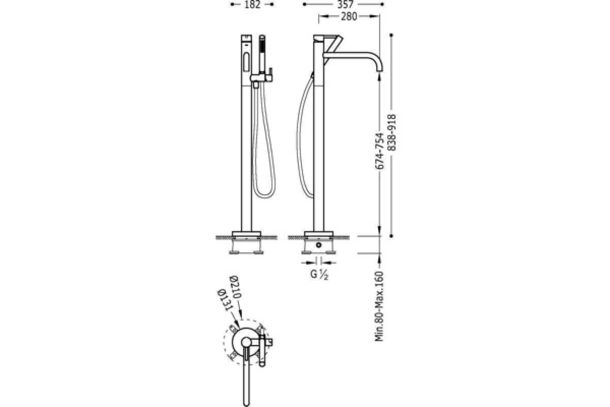 Смеситель для ванны Tres Study 26247005 напольный, хром