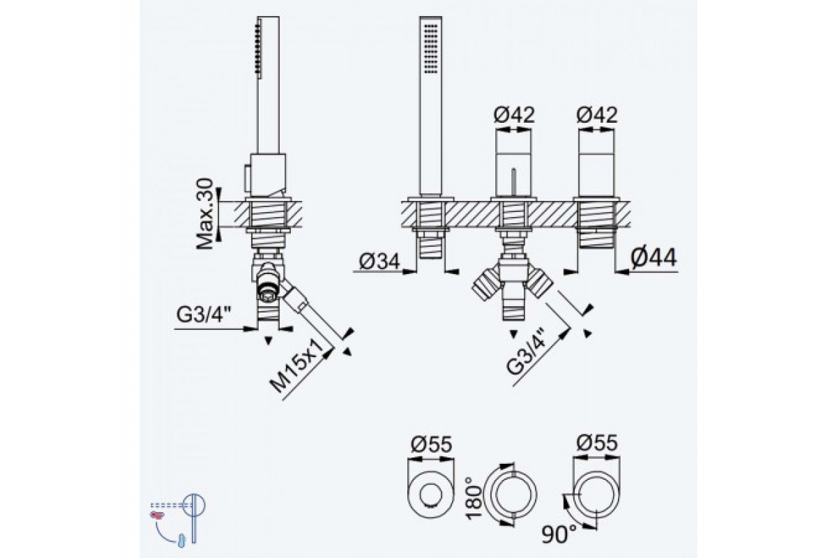 Смеситель на борт ванны, с ручным душем Elo - 2 выхода Avalon 189 500 1NS Night Sky