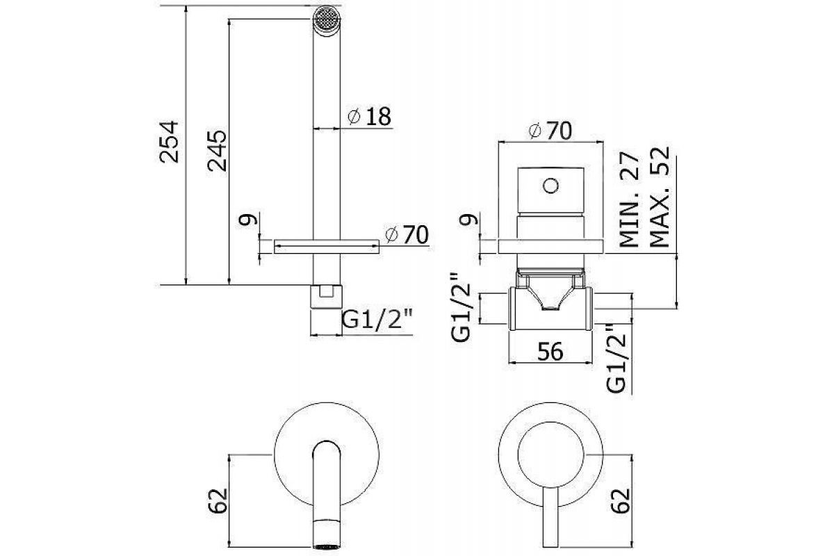 Смеситель Paffoni Light LIG007NO70 для раковины встраиваемый, накладки диам.70мм, излив 245мм