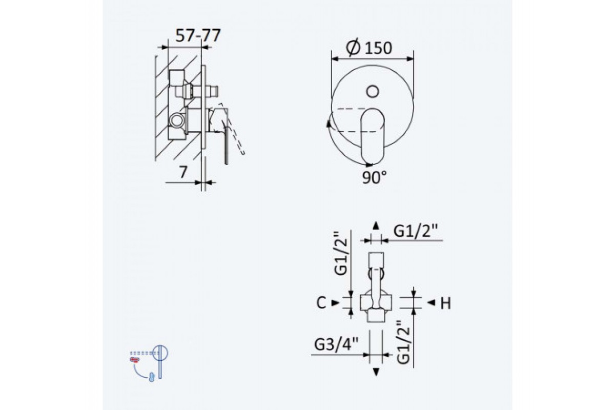 Смеситель скрытого монтажа с 2 выходами Coral 194 130 0CR Chrome