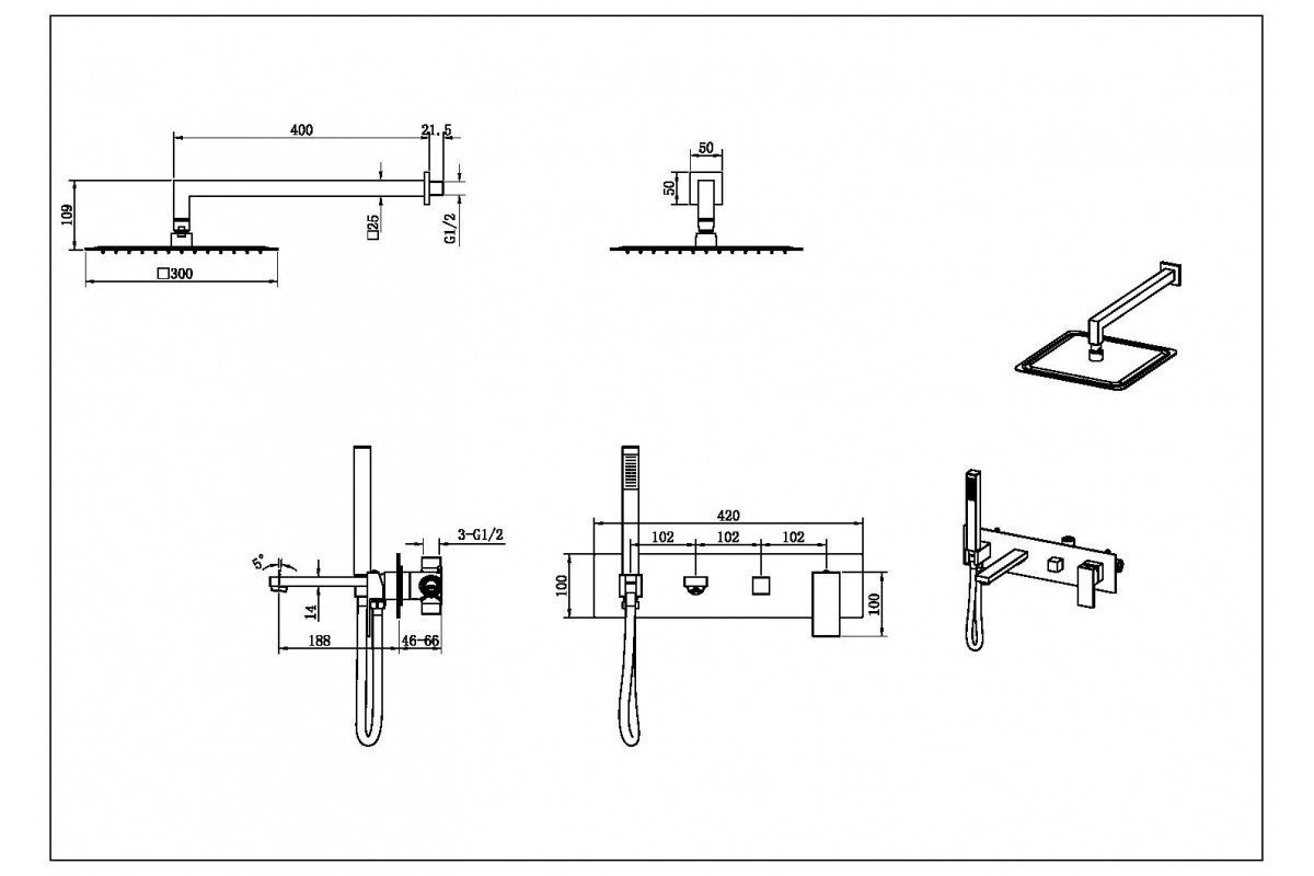 Комплектация: Верхний душ Кронштейн для верхнего душа Душевая лейка Держатель душевой лейки Душевой шланг СмесительПроиз..